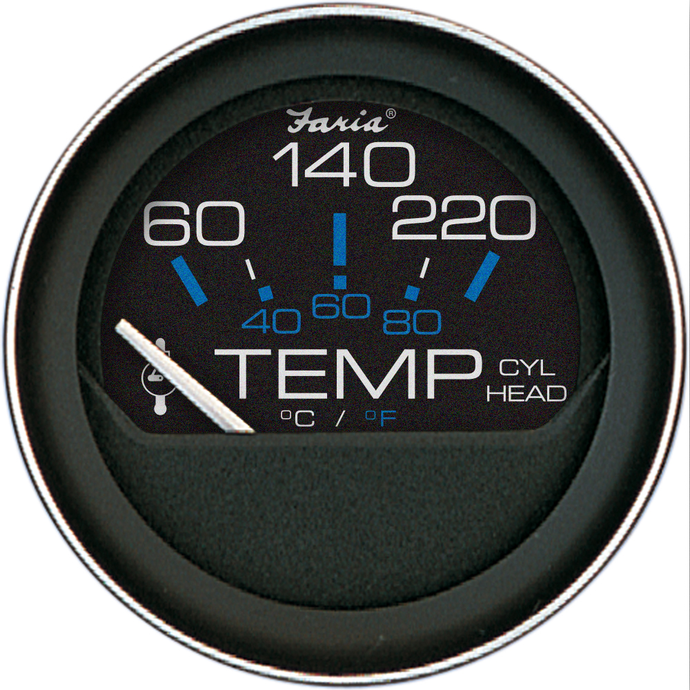 Faria Coral 2″ Cylinder Head Temperature Gauge (60-120° F) w/Sender