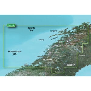 Detailed coverage of the Norway coast from Trondheim to Tromsø. Includes detailed coverage for Sandnessjoen, Bodo, Vaeroy, Langoya, Narvik, and Vestfjorden, as well as lakes Tjeggelvas, Hornavan, Uddjaur, Aisjaur, Fluka, Storavan, and Storsjön.