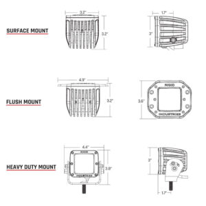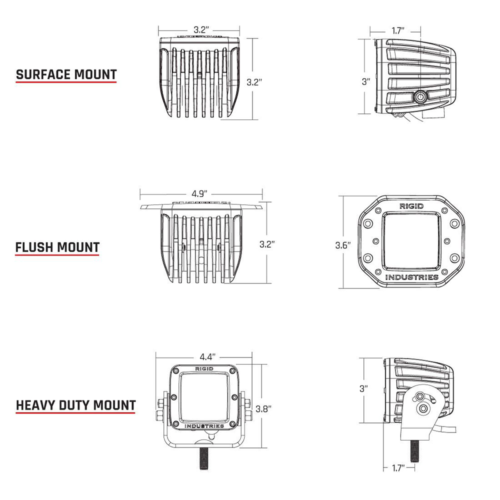 Measuring just 3 x 3 Inches, the D-Series PRO packs a powerful punch of up to 102 percent more raw lumens with PRO. RIGIDs D-Series PRO lights are available with either a black or white finish, updates to the D-Series include prominent branding and blacked-out circuit boards for a more refined look.
