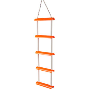 These Portable Emergency Boarding Ladders are made of molded-in, high-visibility orange polycarbonate with nylon rope supporting the frame. They secure quickly to cleats, railings, stanchions and halyards and will support up to 300 pounds.