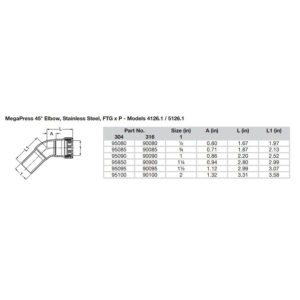 MegaPress 1/2″ 45° Stainless Steel 304 Elbow Street – Press Connection – Smart Connect Technology