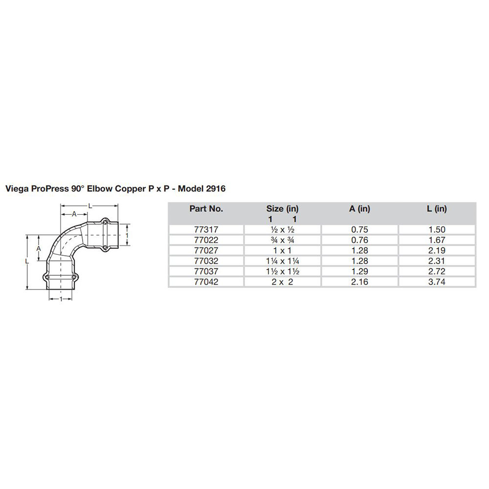 ProPress 2″ – 90° Copper Elbow – Double Press Connection – Smart Connect Technology