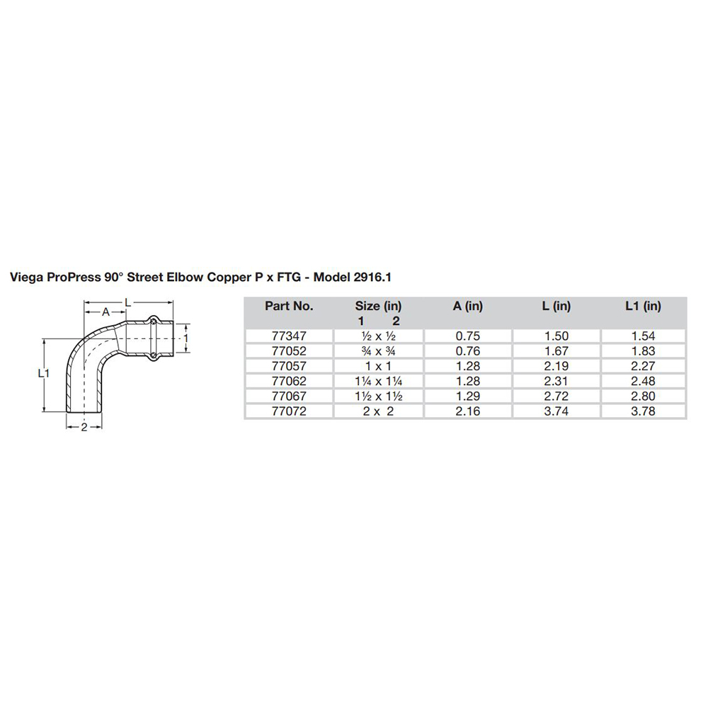 ProPress 2″ – 90° Copper Elbow – Street/Press Connection – Smart Connect Technology